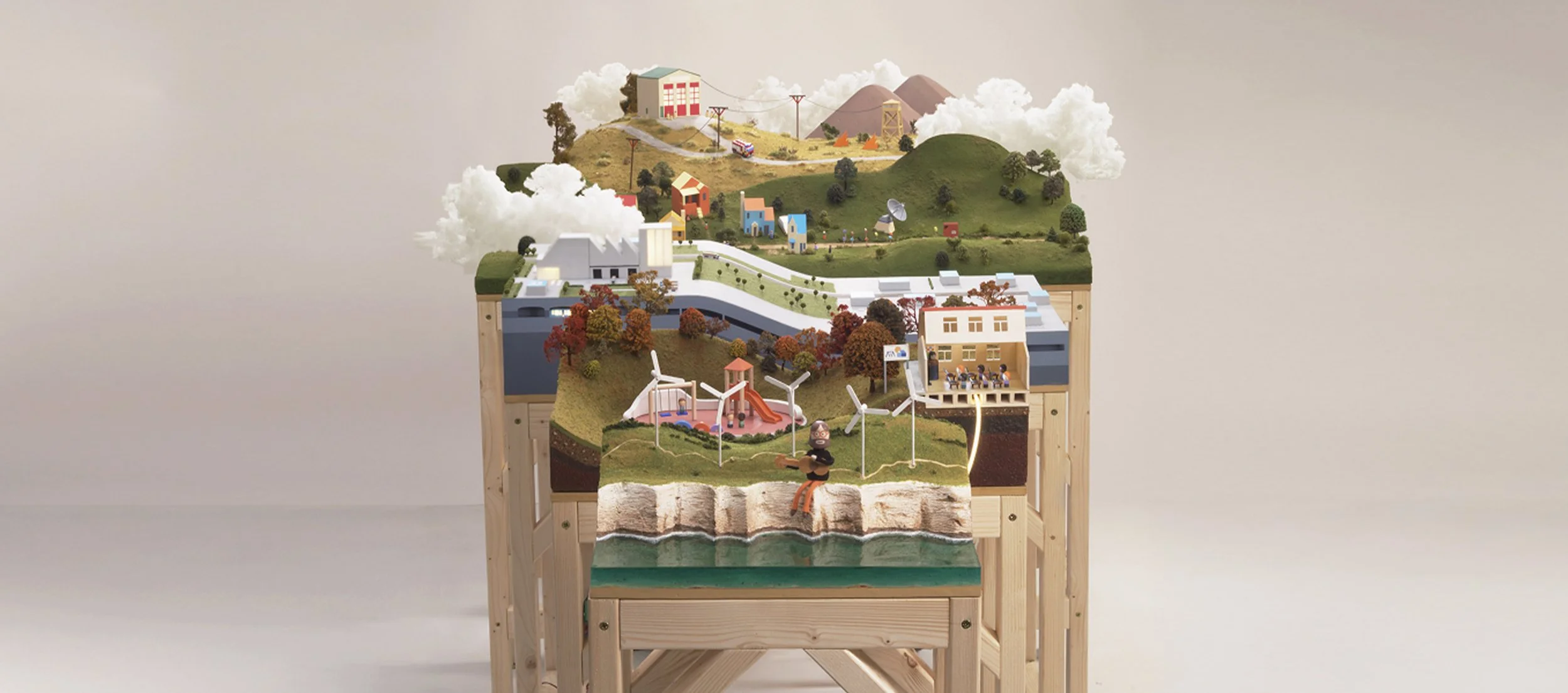 So naturally, we created a miniature stop motion world. Brought to life by many, many hands. A lot of the set was carved from wood, the clouds made from cotton wool, and everything was painstakingly hand crafted and painted, so pre-production took the longest. A total of 6 weeks in the lead up to filming.